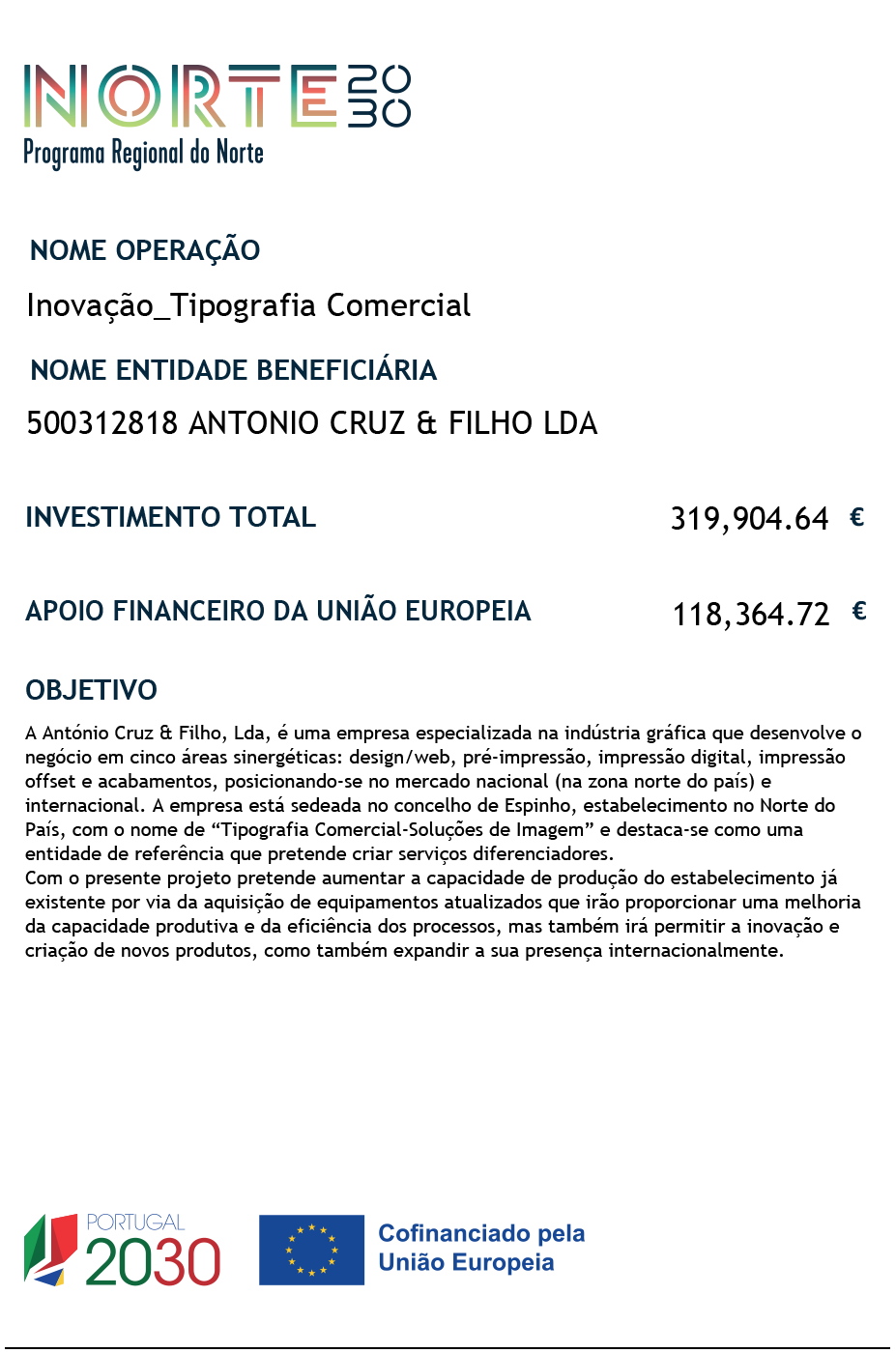 A Tipografia Comercial, actua no mercardo da Gestão da Produção Gráfica, prestando serviços de design, pré-impressão, impressão digital de pequeno formato, impressão offset e acabamentos.